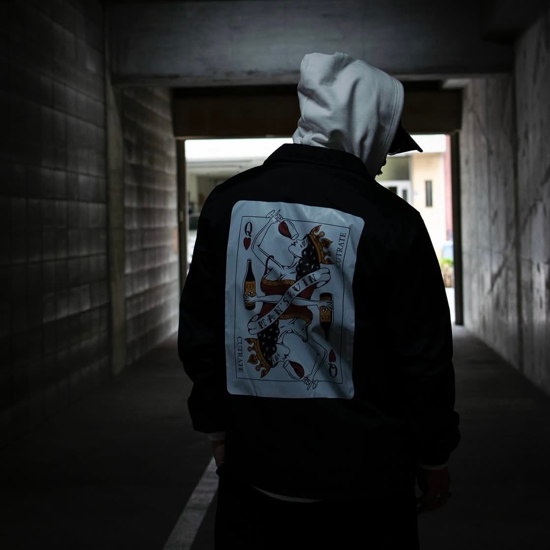 ITEM NO. ・CR-25AW002 フロント、バックにプリントが入ったナイロンコーチジャケット。フロントにブランドネーム、バックにはQUEENをモチーフにしたトランプのデザインがプリントで入る。 M : WIDE 112 / SHOULDER WIDTH 47 / RENGTH 70 / SLEEVE RENGTH 63 L : WIDE 118 / SHOULDER WIDTH 50 / RENGTH 73 / SLEEVE RENGTH 65 XL : WIDE 124 / SHOULDER WIDTH 53 / RENGTH 76 / SLEEVE RENGTH 67 XXL : WIDE 132 / SHOULDER WIDTH 57 / RENGTH 79 / SLEEVE RENGTH 69