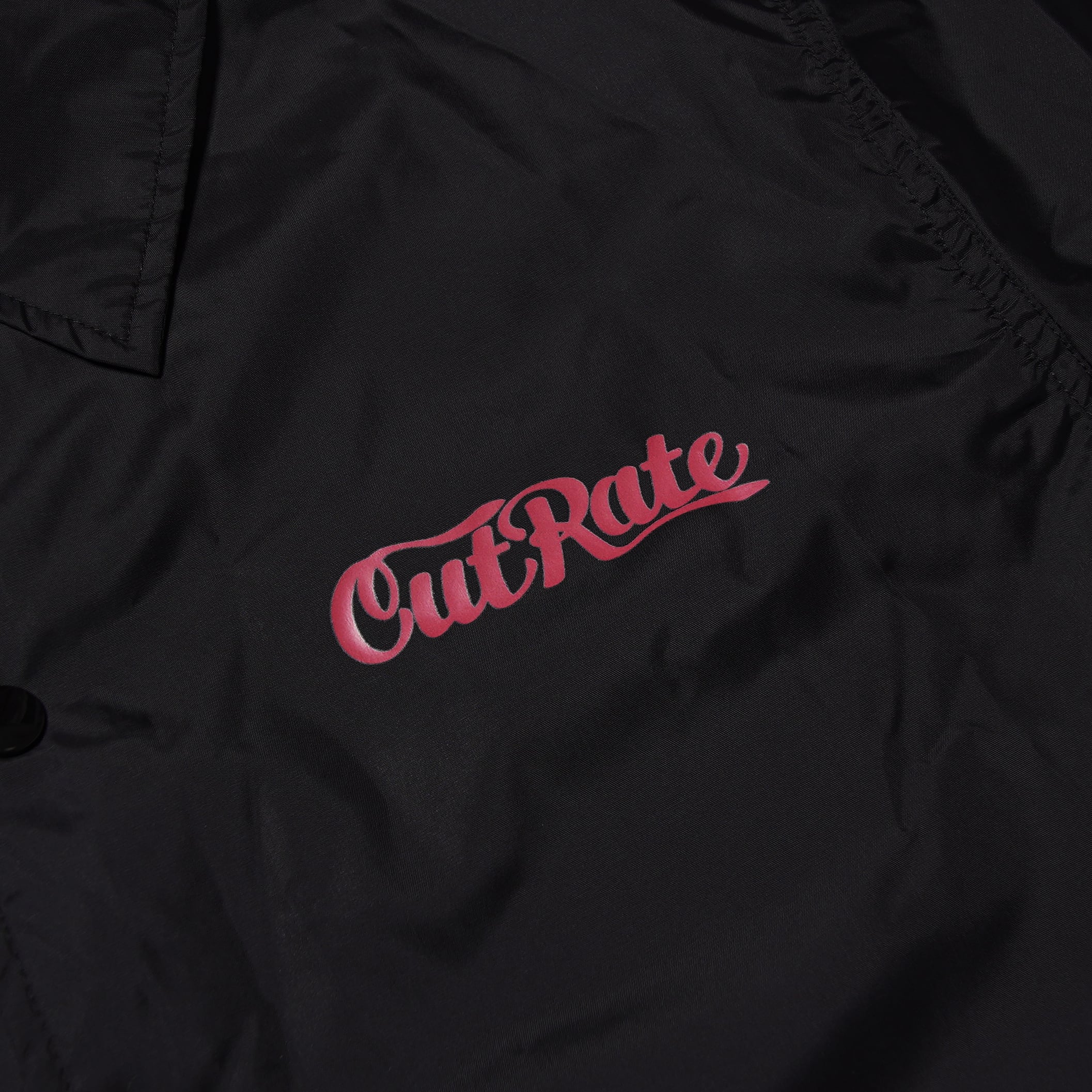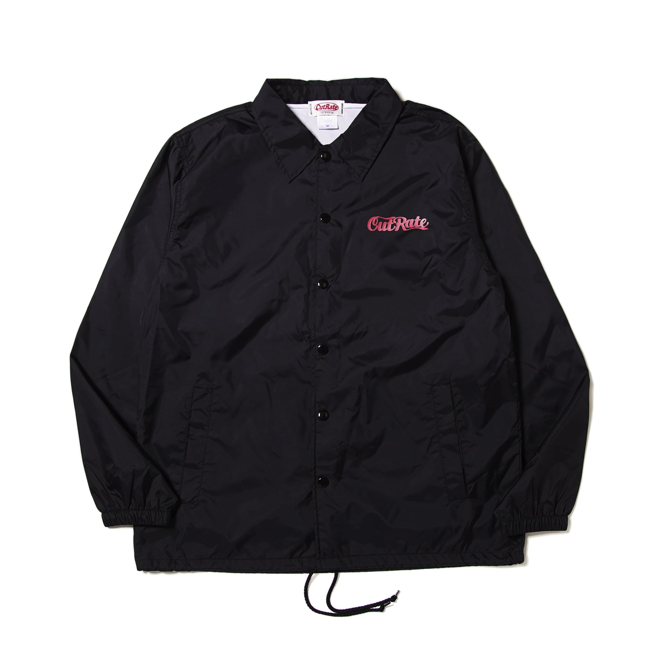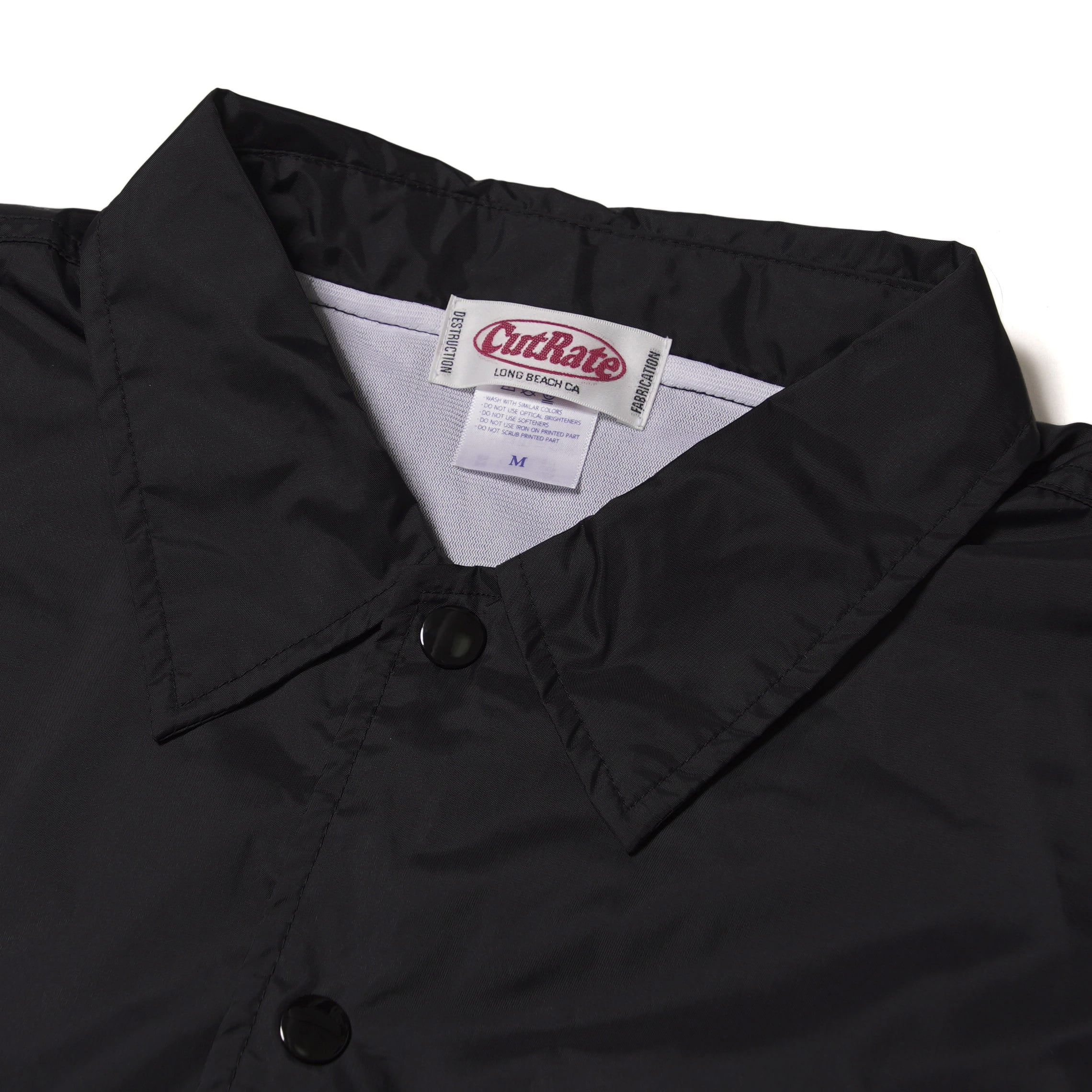フロント、バックにプリントが入ったナイロンコーチジャケット。フロントにブランドネーム、バックにはQUEENをモチーフにしたトランプのデザインがプリントで入る。