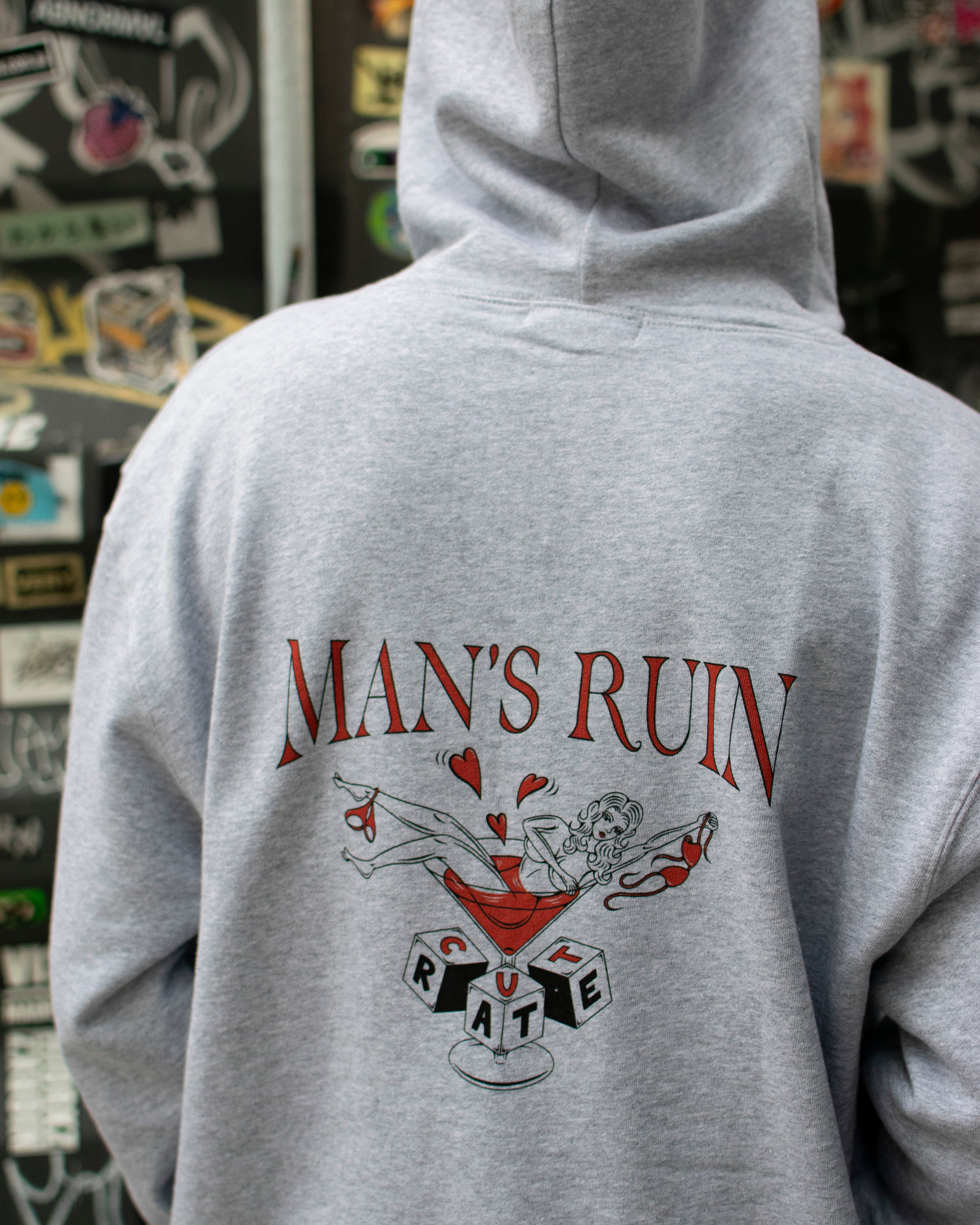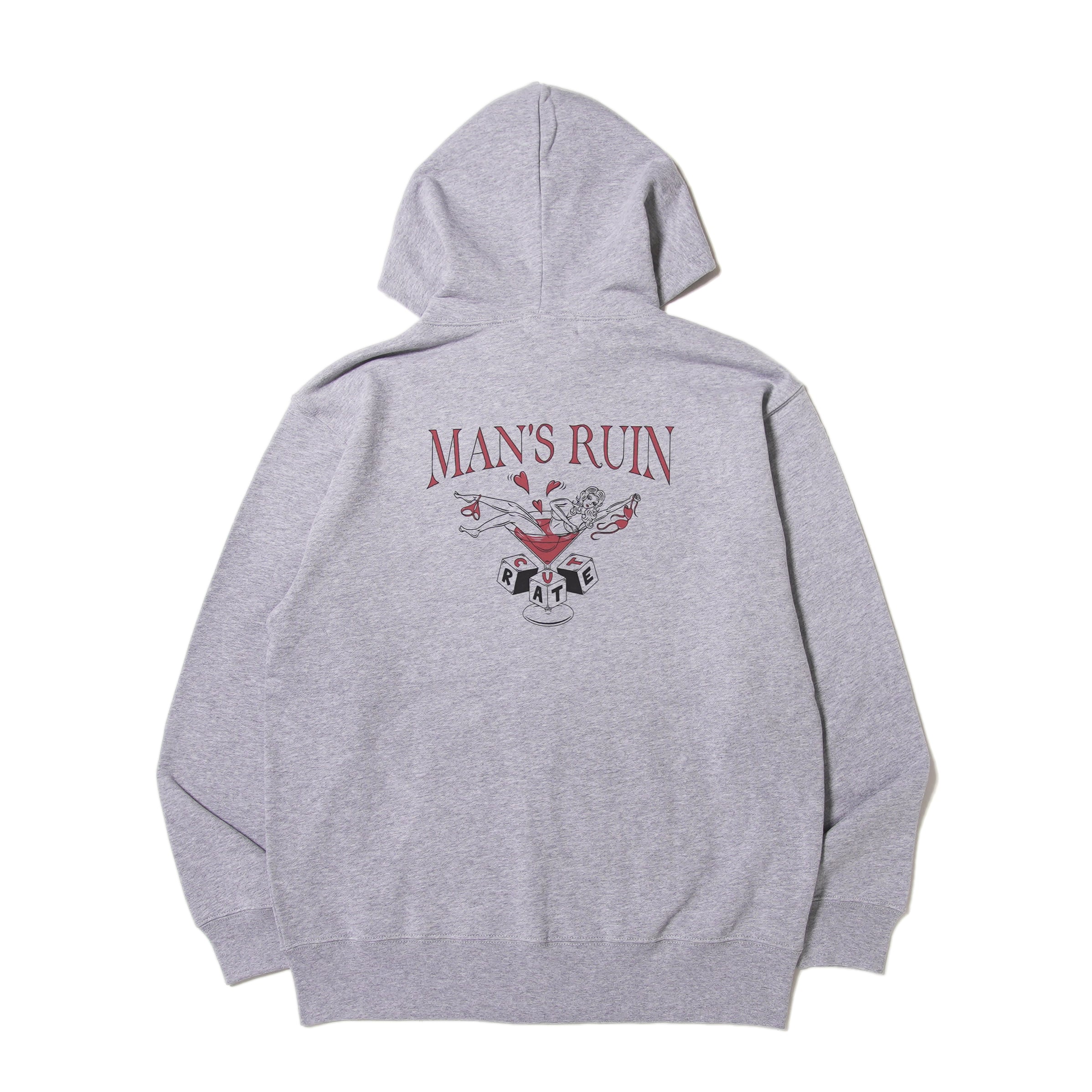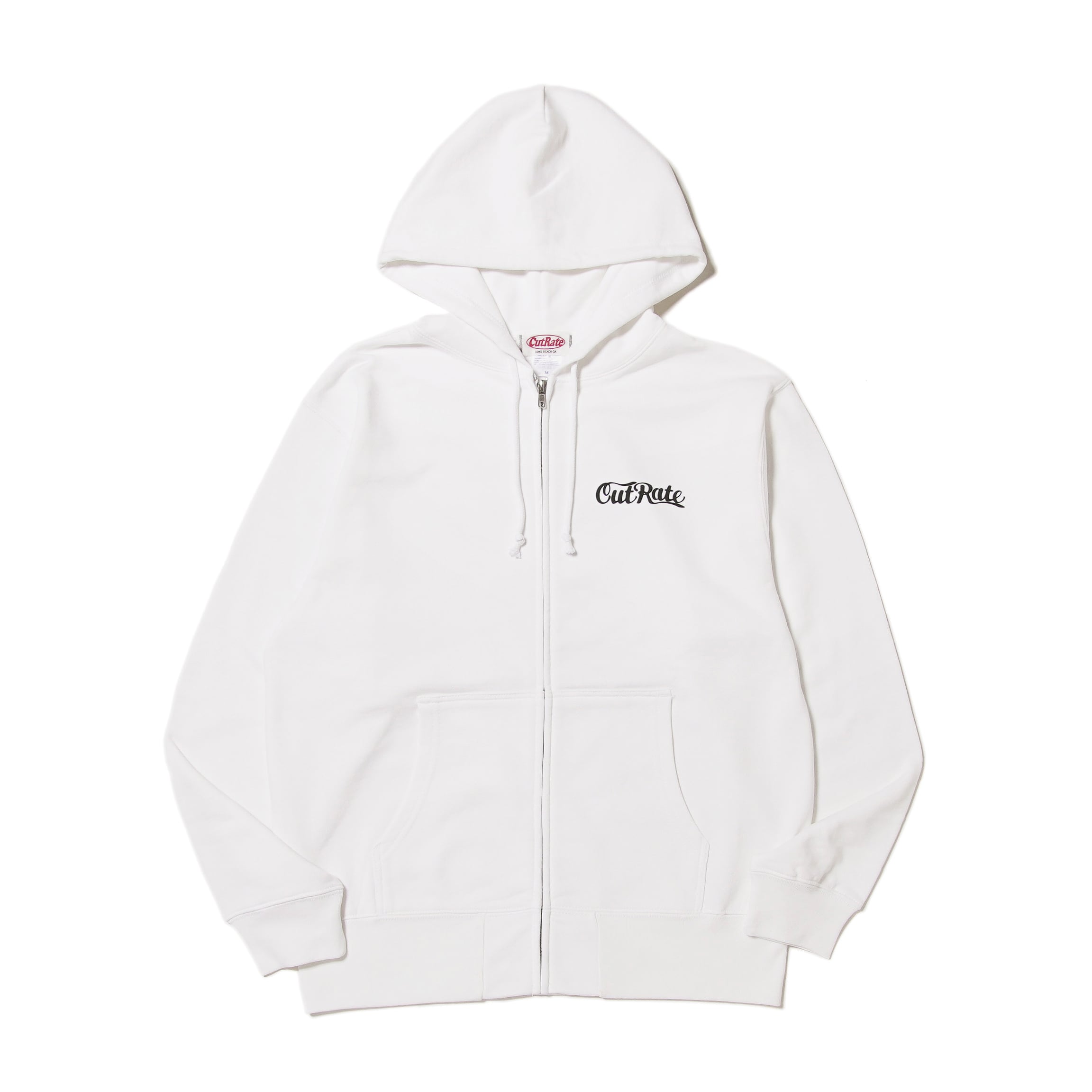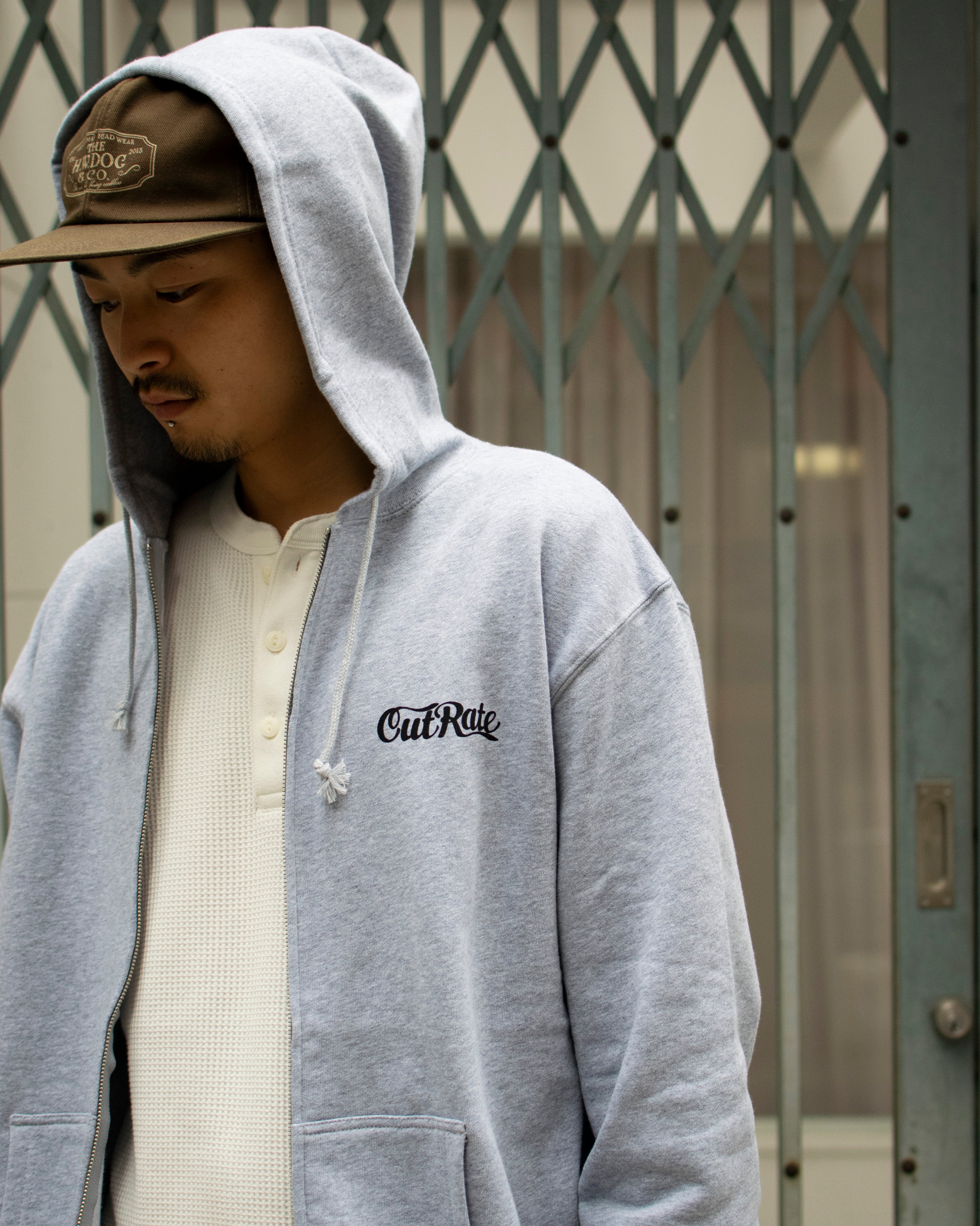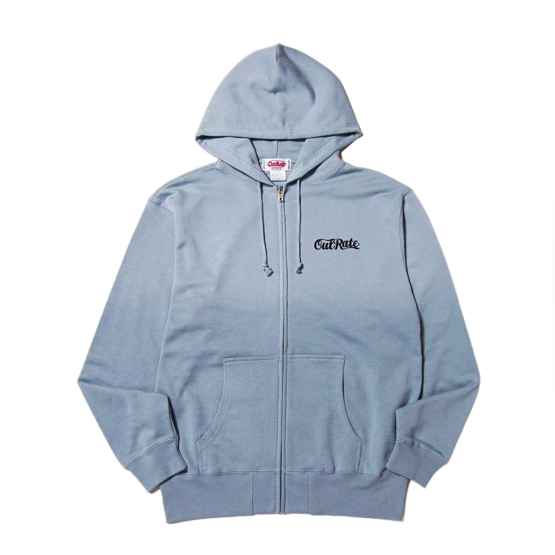 フロント、バックにプリントを配したジップパーカー。フロントにブランドネーム、バックにはレトロガールをモチーフにしたプリントが入る。