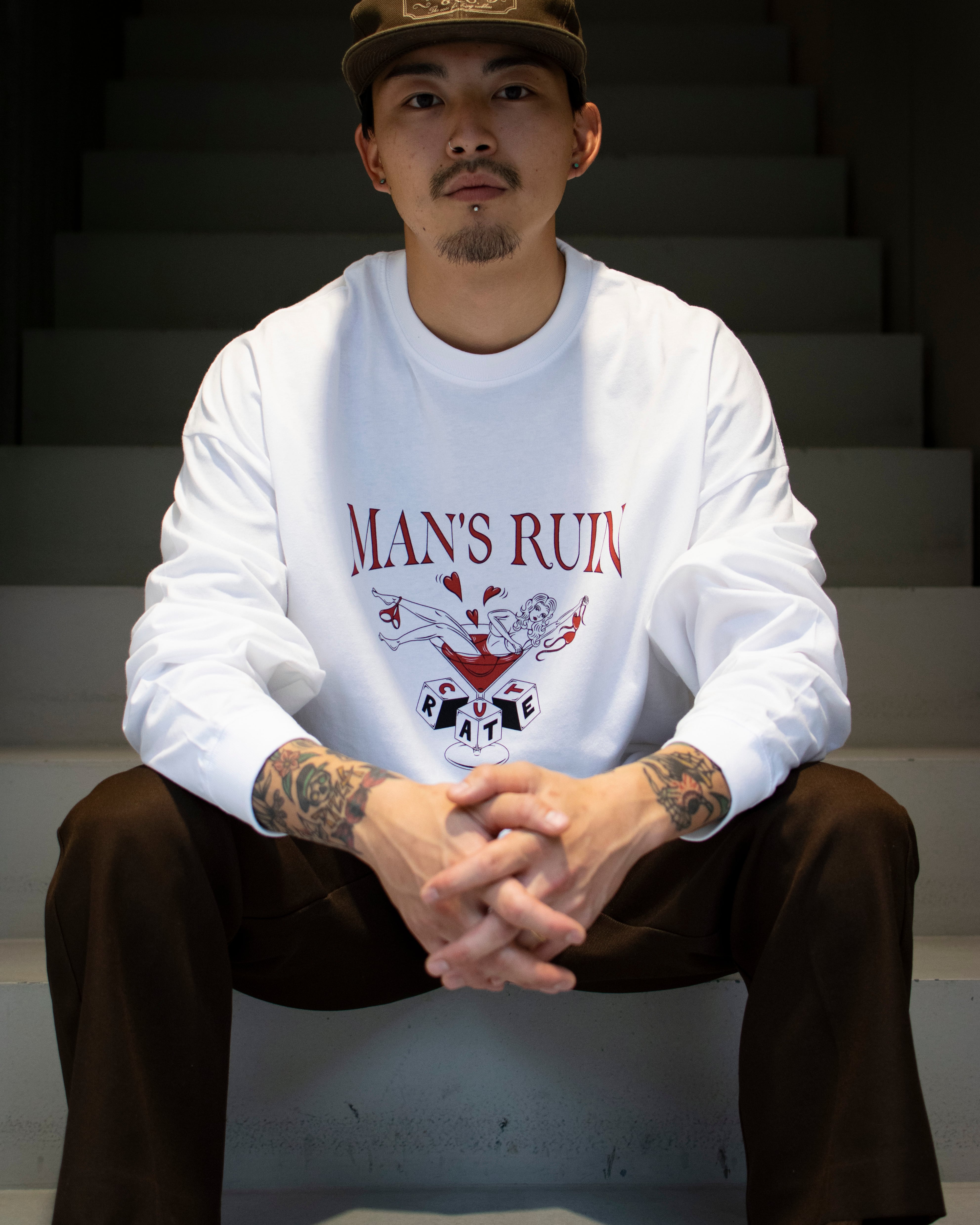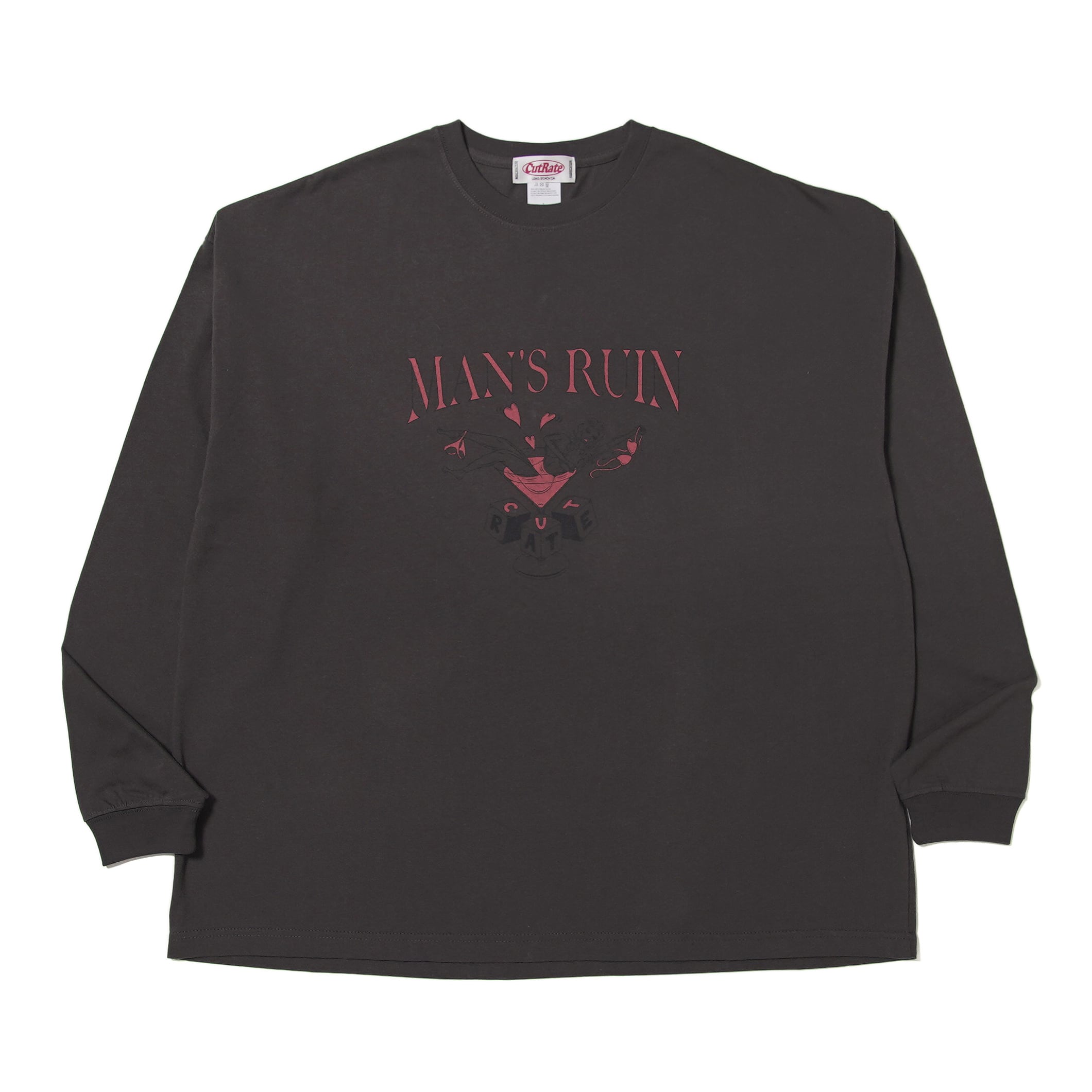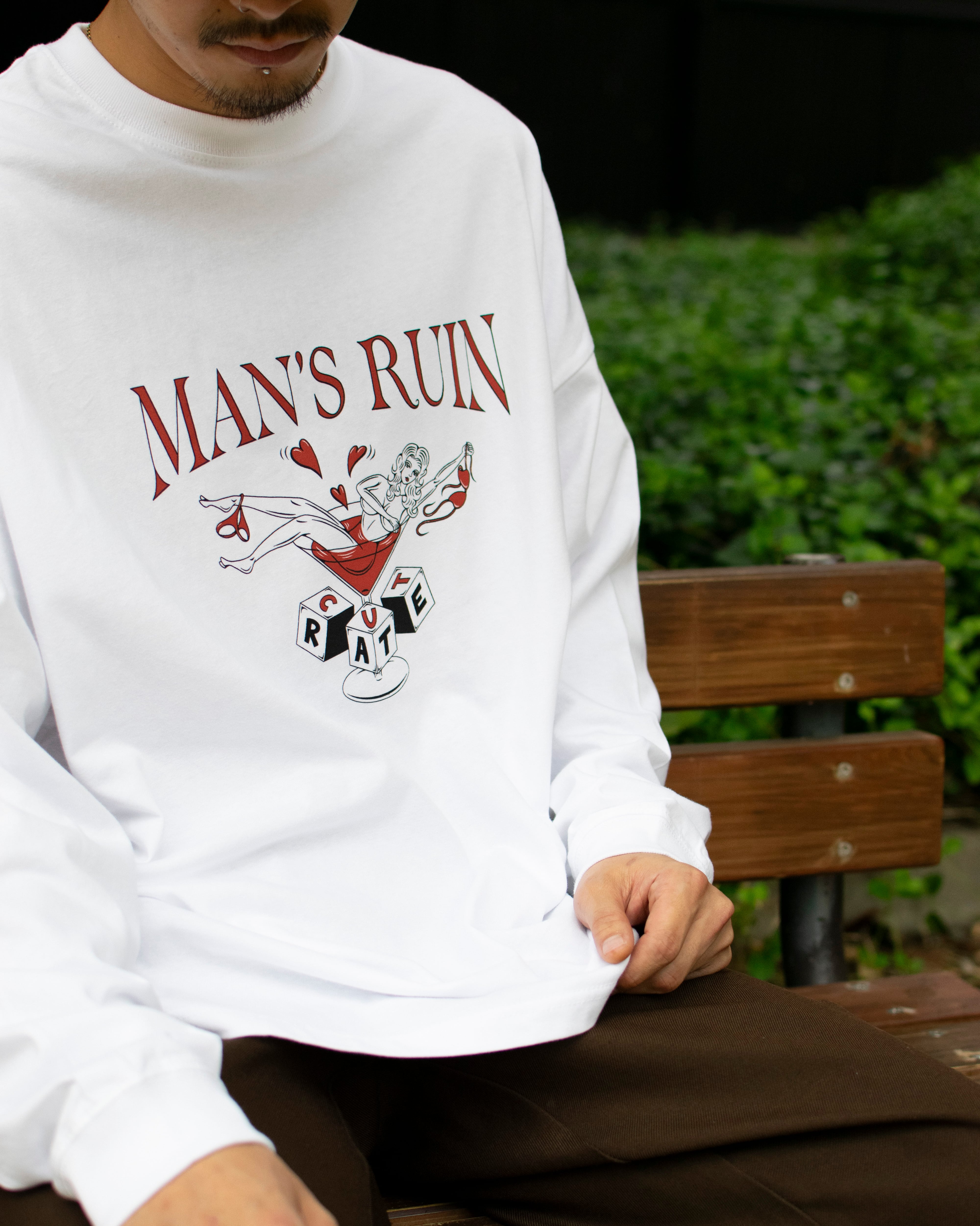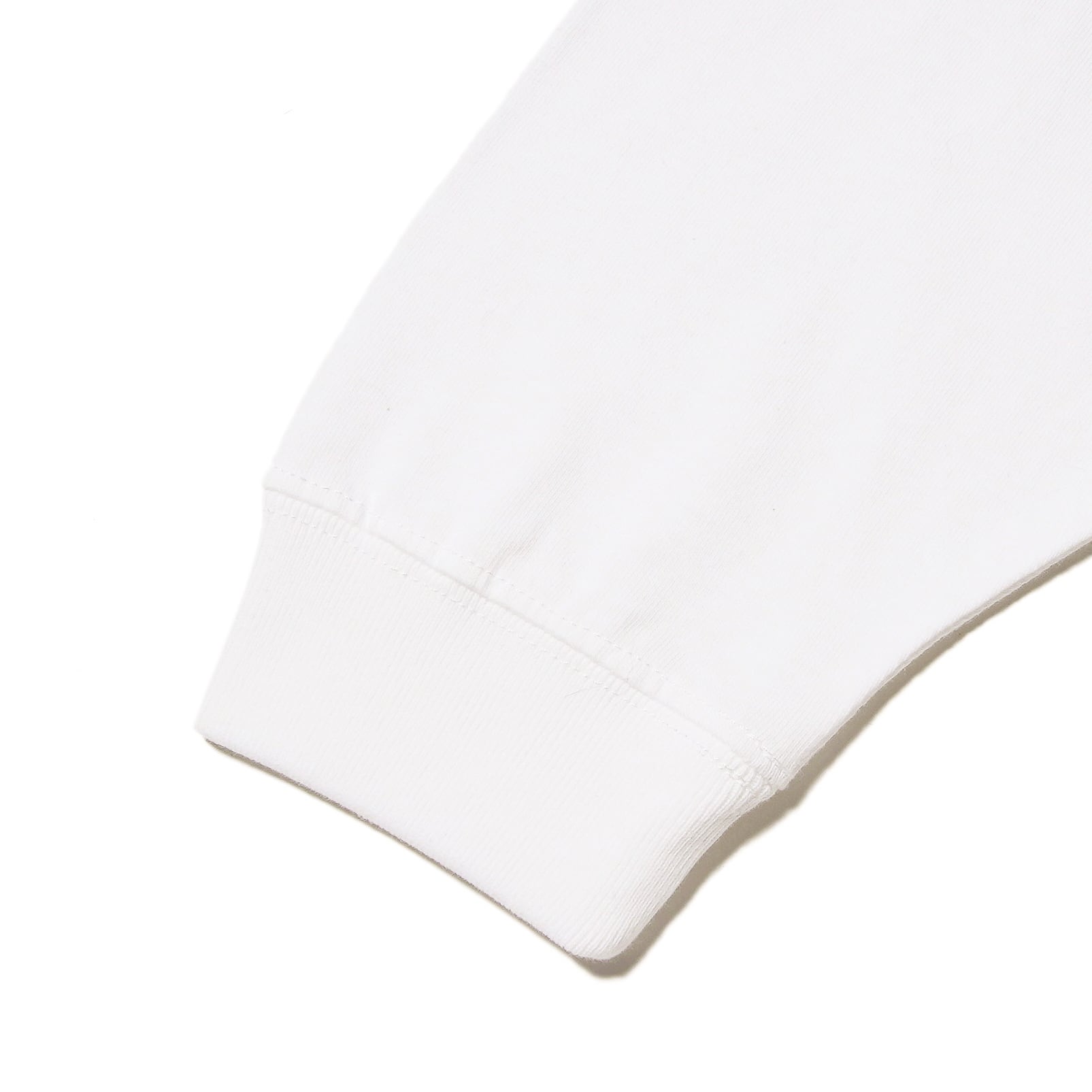 フロント、バックにプリントを配したL/S Tシャツ。フロントにレトロガールをモチーフにしたプリント、バック首元にブランドロゴプリントが入る。