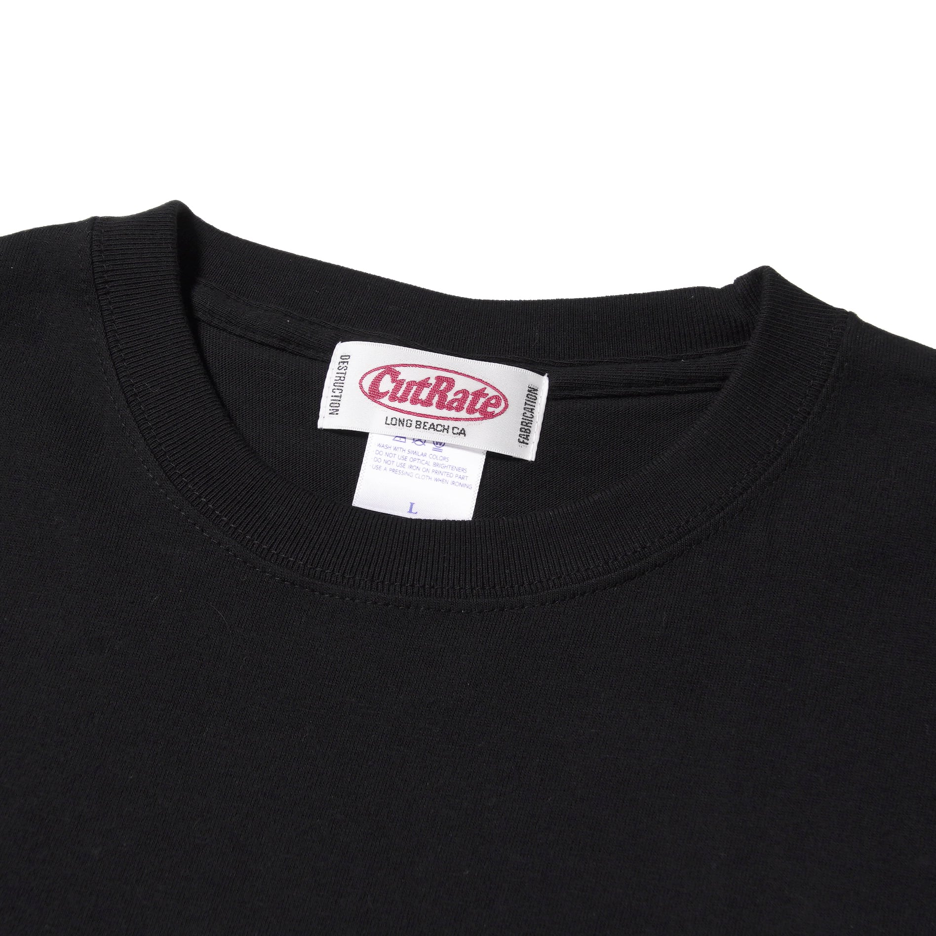 ピンストライプのグラフィックを左胸と、両袖にプリント。5.6oz生地を採用。