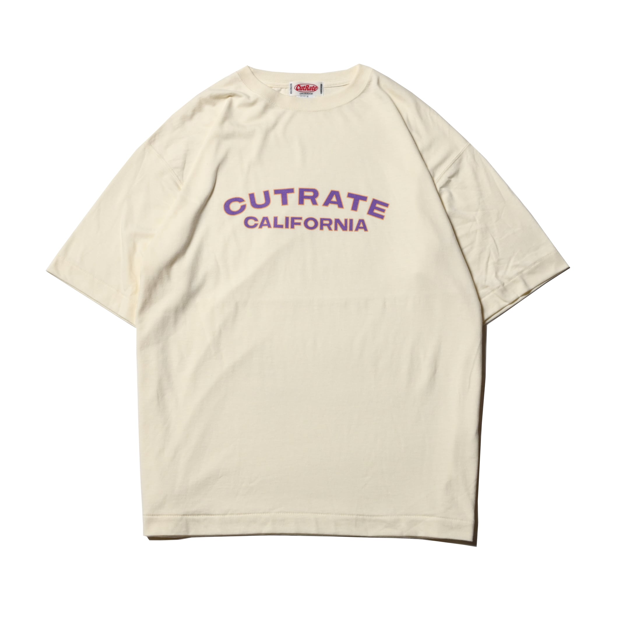 フロントにCUTRATEのブランドネームを落とし込み、カリフォルニアの風を感じさせてくれるようなグラフィックを落とし込んだデザイン。シルエットはドロップショルダーで製作。