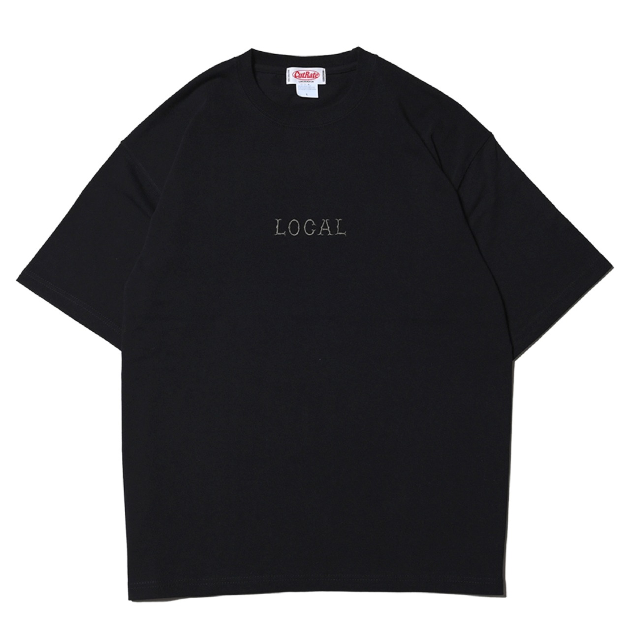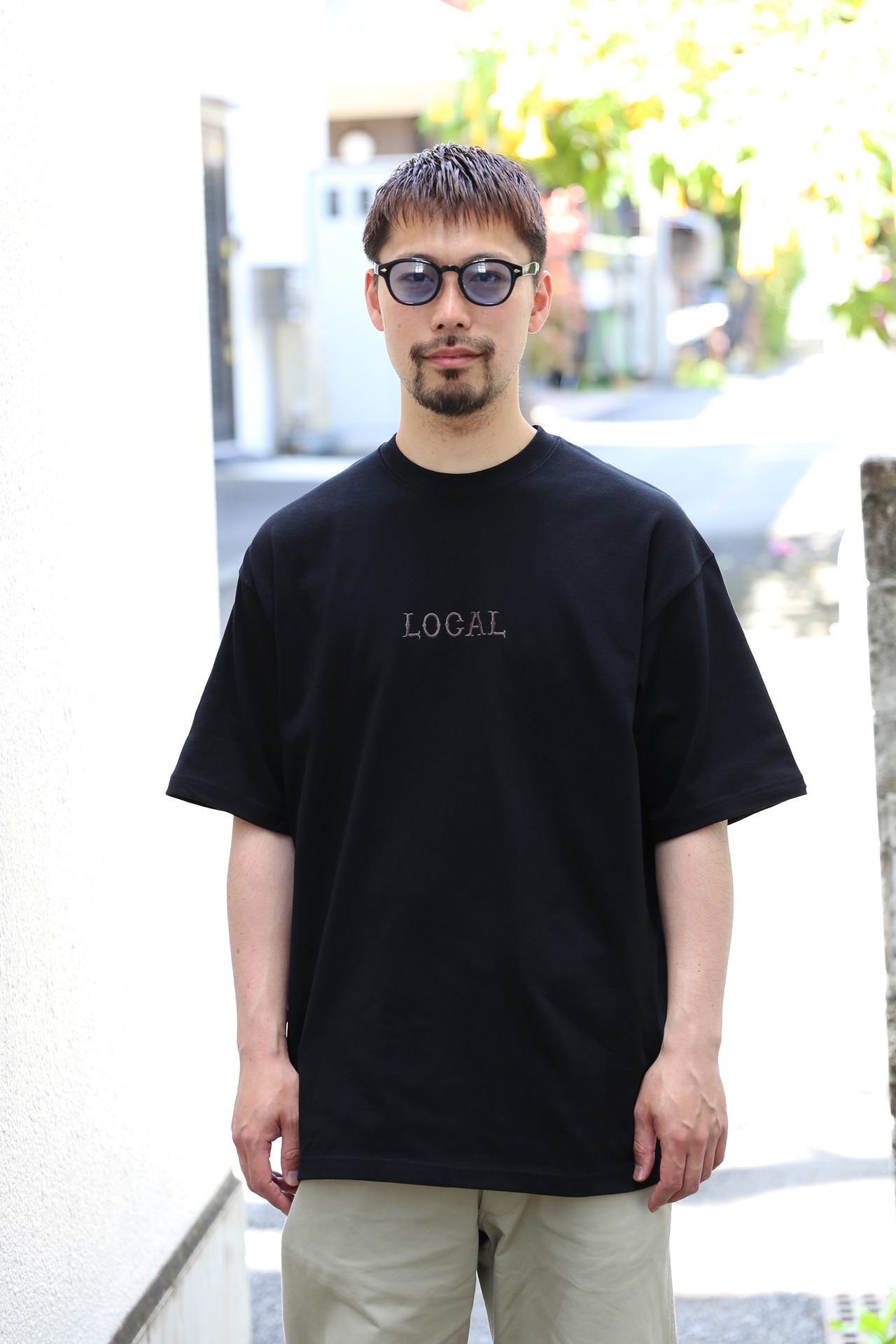 フロント中央に刺繍でLOCALロゴを落とし込んだデザイン。シルエットはドロップショルダーで製作。9.1ozのヘビーウェイトボディーを使用し、ドロップショルダーで製作。