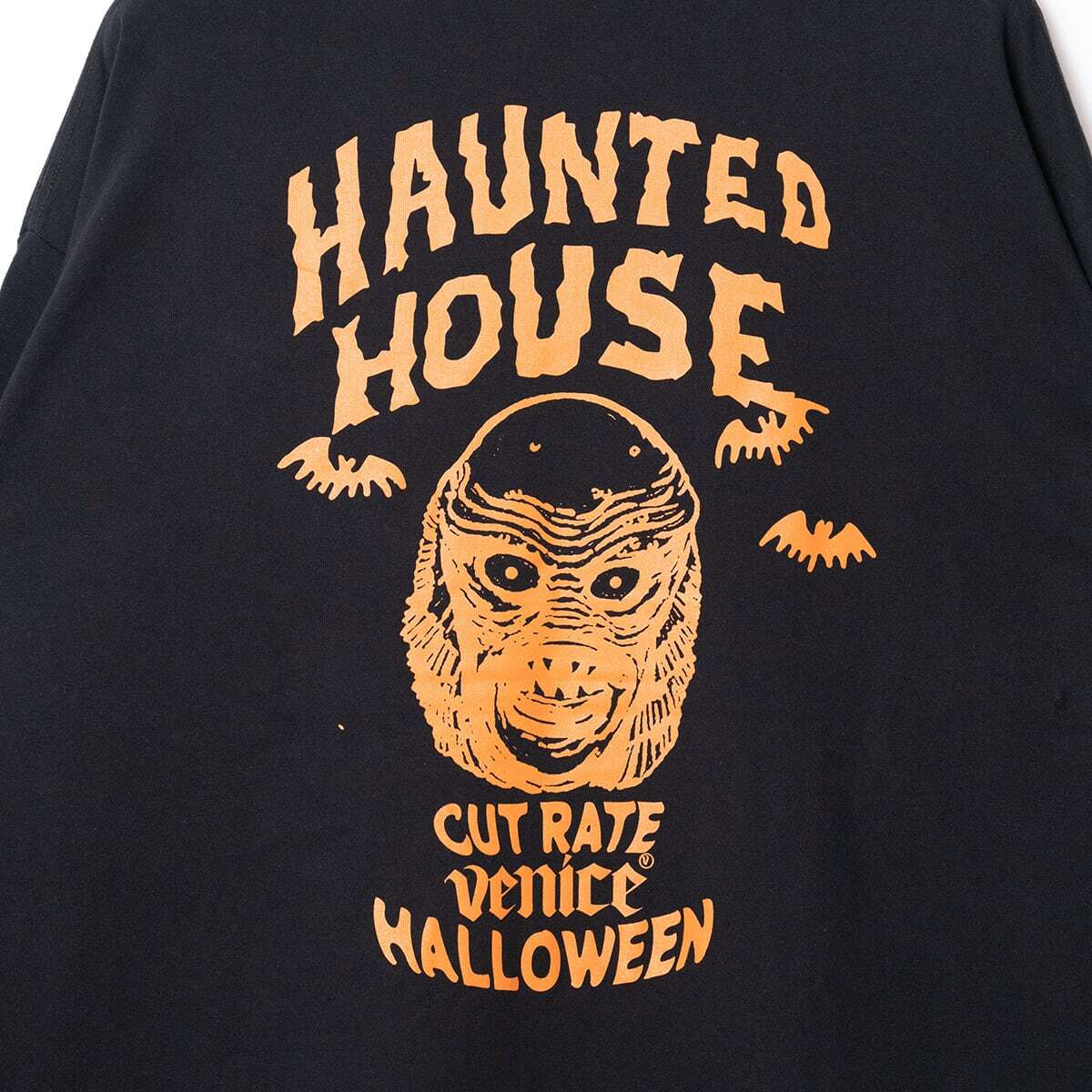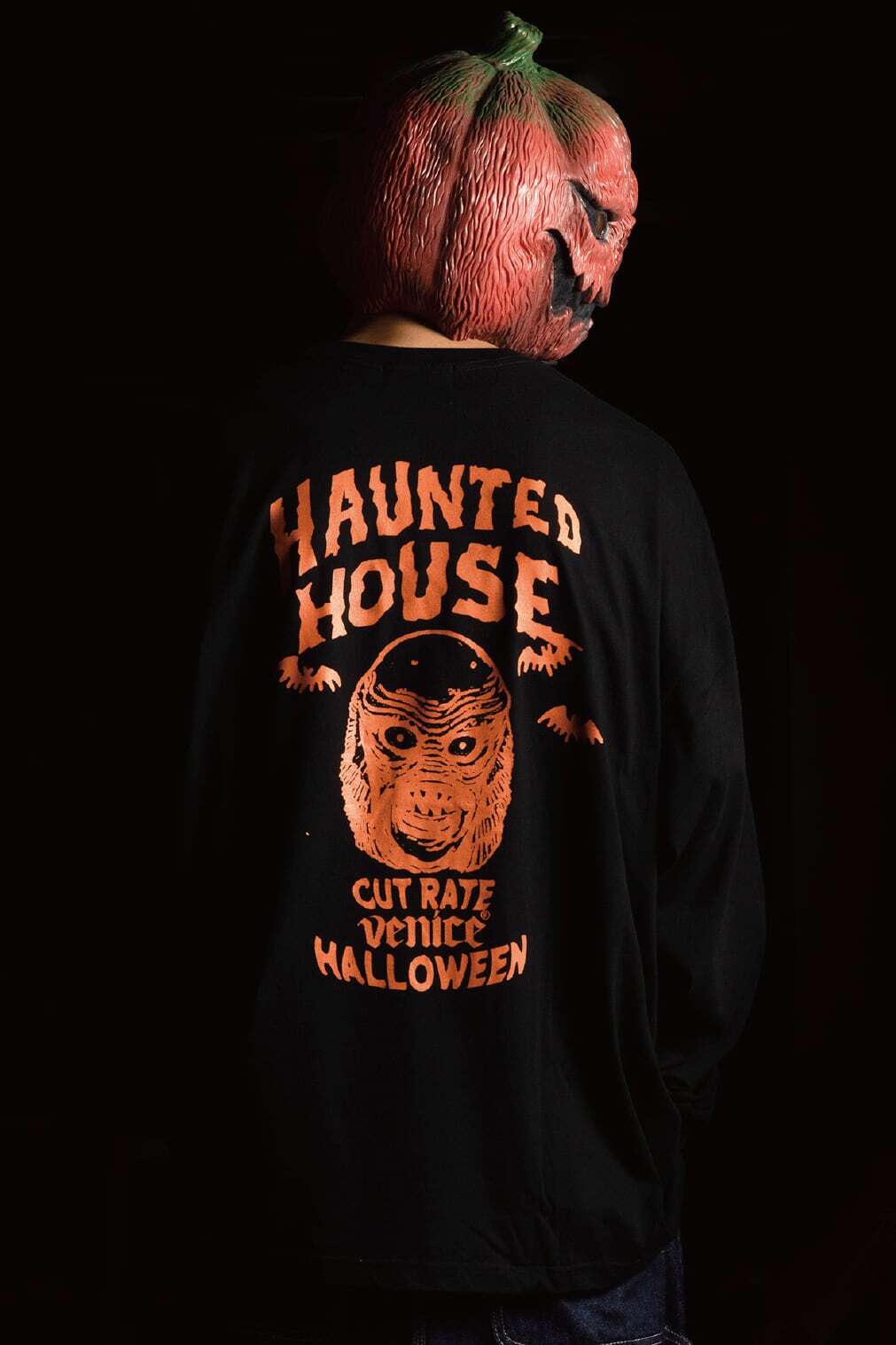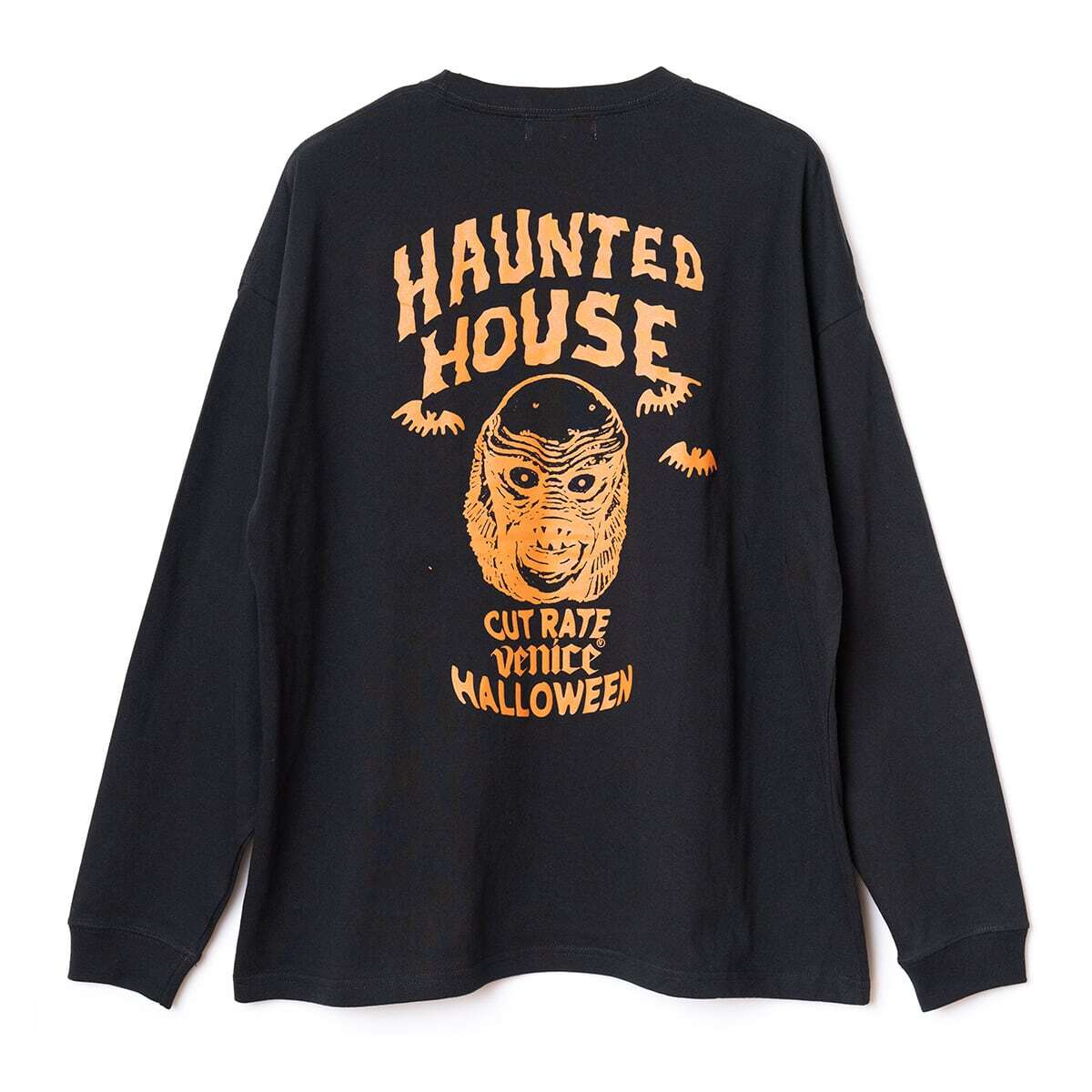 HORROR NIGHTに遊び心を取り入れたグラフィックで製作したL/S TEE。アメリカナイズなクラシックでポップなグラフィックに仕上げ一枚。フロントには"ジャックオーランタン”をイメージさせるワンポイントプリントにバックは”MERMAN”と”WOLF”のプリントが入る。ドロップショルダータイプ。